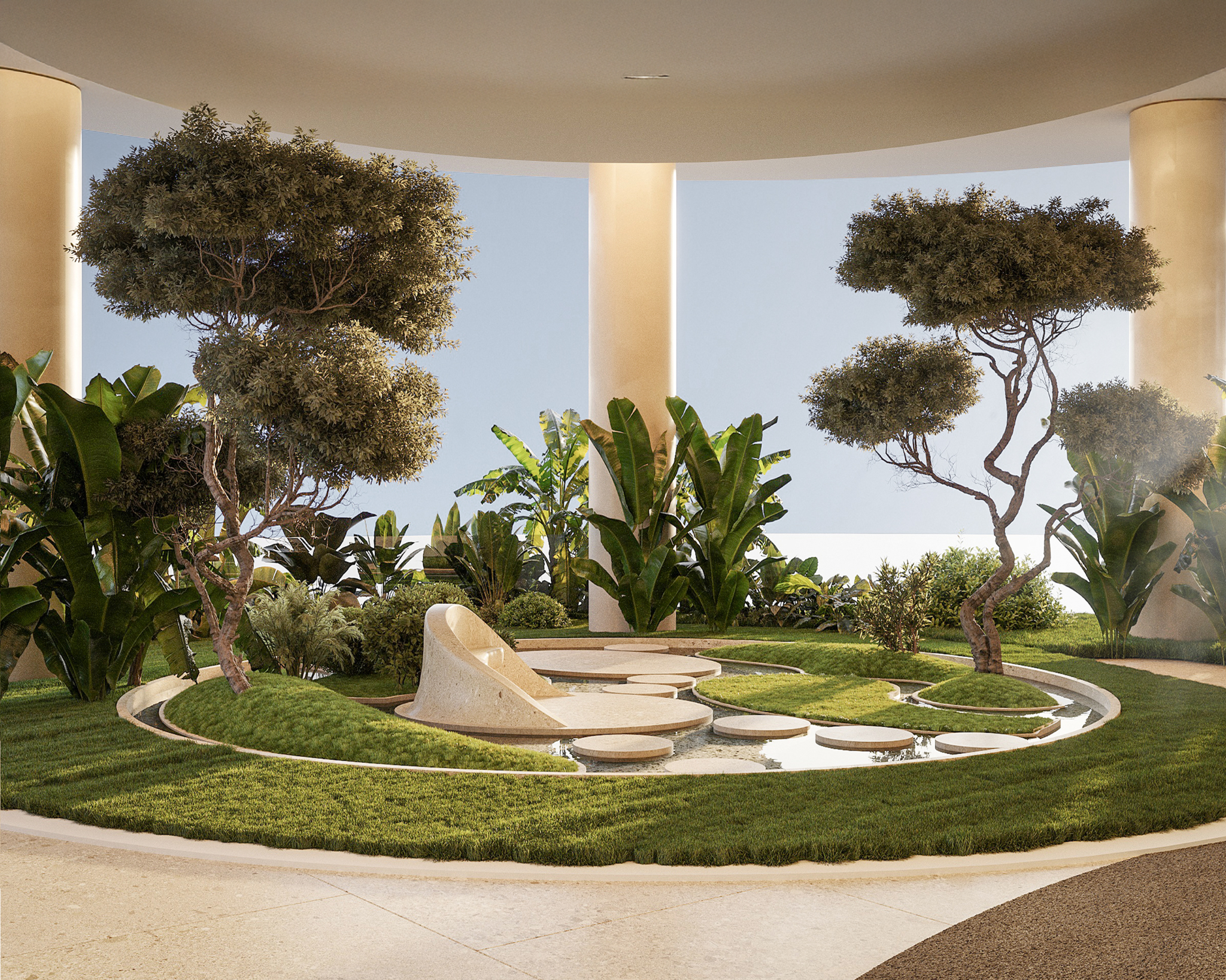 The project is shaped through collaborations with leading international firms, including 1508 London, Trush Design, Valor Hospitality, Blue Coral Concept, and Eden Art Gallery. Their contributions influence every layer of the resort, from design and interiors to service frameworks and cultural programming. The result is a cohesive environment where wellness is consistent throughout the resident and guest journey. Meditation decks, hydrotherapy pools, cryotherapy chambers, yoga pavilions, and nutrient-focused dining create an ecosystem that supports both physical and emotional wellbeing. Landscaped gardens and rooftop beach clubs extend this vision into shared social spaces, allowing wellness to become part of daily life rather than a scheduled activity.