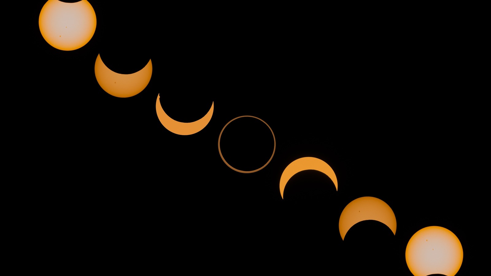 Tam güneş tutulmaları, Güneş ve Ay'ın Dünya'nın gökyüzünde aynı görünür boyutta olabilmesi sayesinde gerçekleşir; Güneş, Ay'dan 400 kat daha büyüktür ancak aynı zamanda 400 kat daha uzaktadır. Ancak bu durum her zaman geçerli değildir. Ay, Dünya yörüngesinde hafif bir elips çizdiğinden bazen daha uzakta olur ve bu durumda görünür boyutu Güneş'inkinden daha küçük kalır.